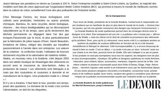 Le Devoir – Octobre 2019